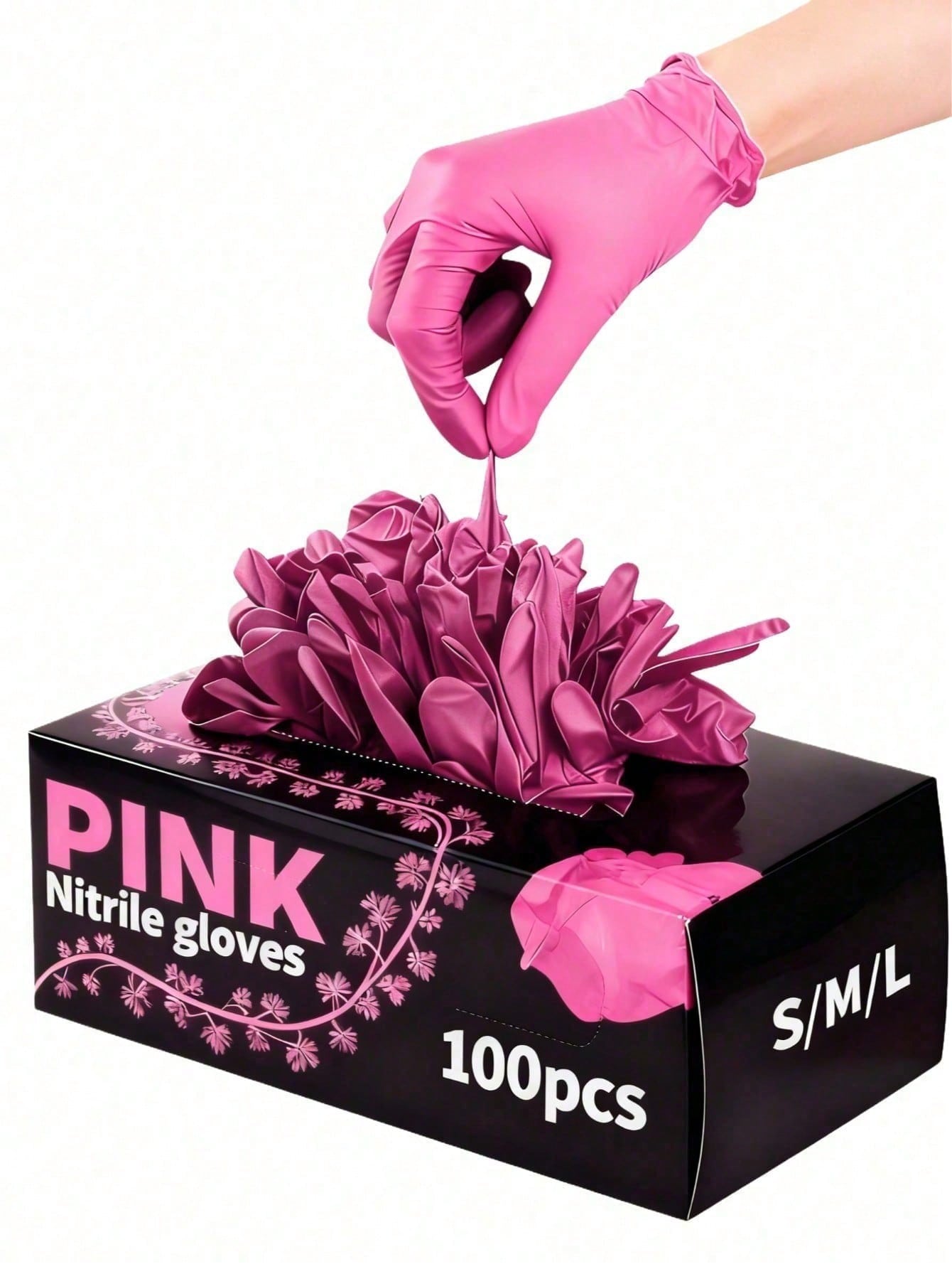 100pcs Per Pack, Available In Deep Pink And Light Purple. Disposable Nitrile Gloves. Sizes: S, M, L, XL. Durable, Waterproof, And Thickened, Suitable For Household Cleaning. Also Applicable For Kitchen, Bathroom, Cleaning, Tattooing, Beauty Care, Hair Coloring, Pet Care, Beauty Salon, Cleaning Supplies, Kitchen Essentials, Etc. New In 2026 Essential Cleaning Tools