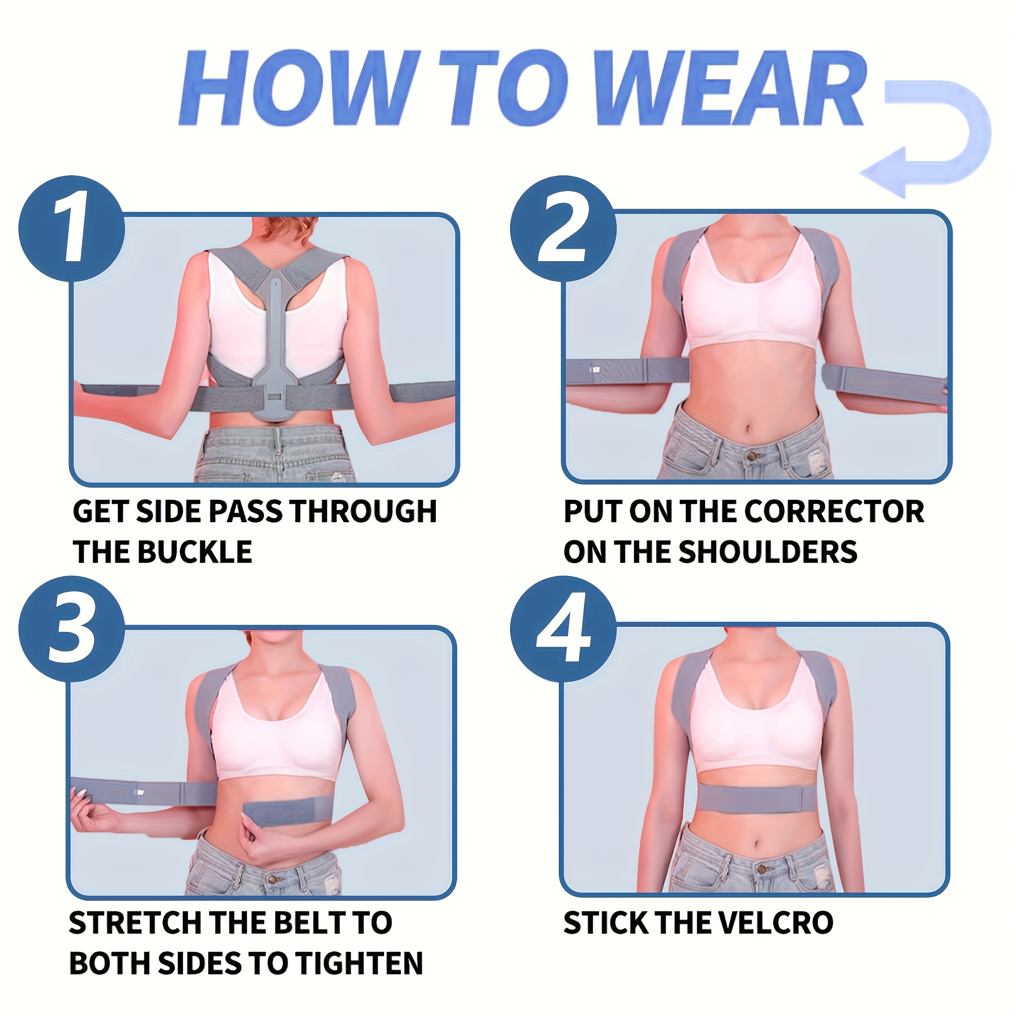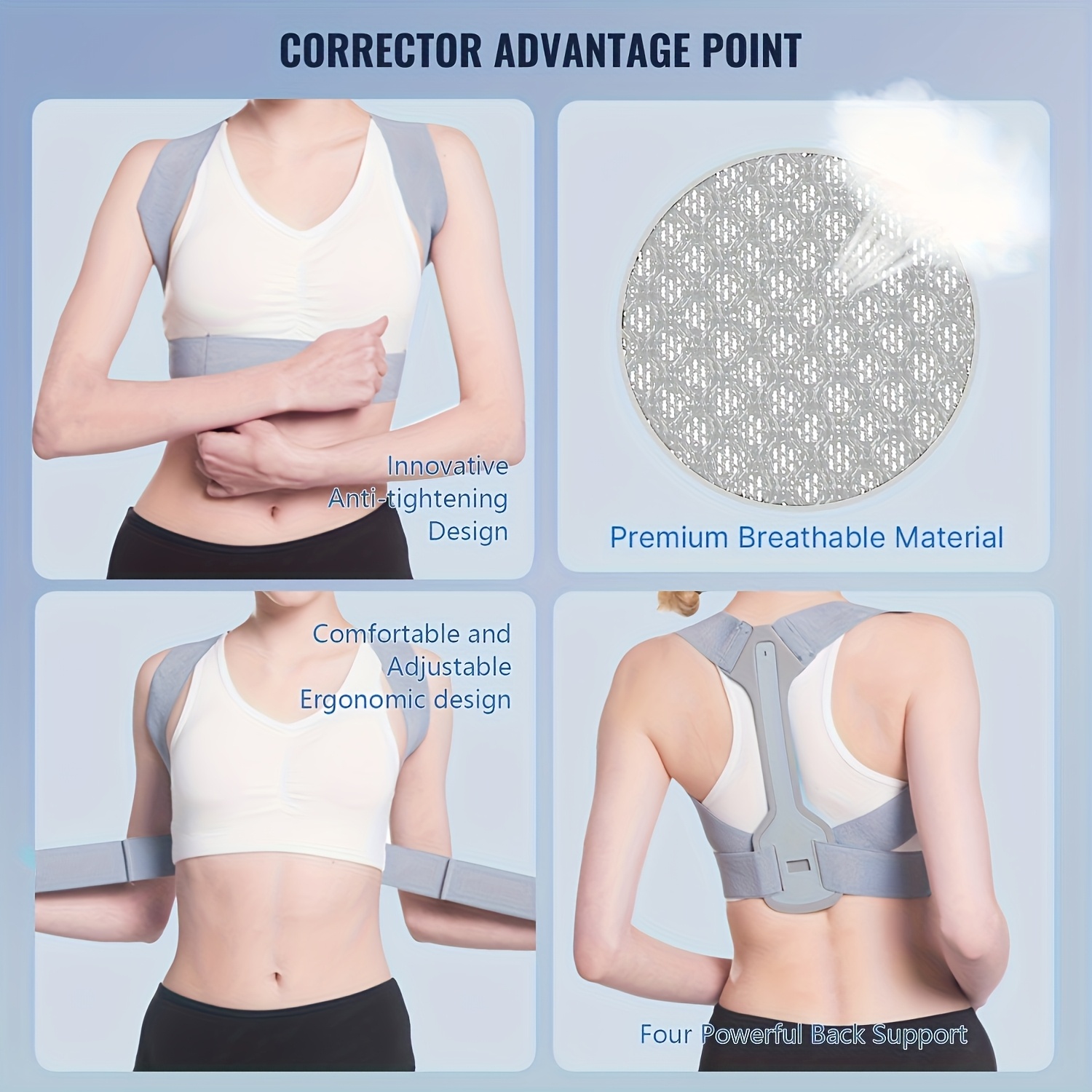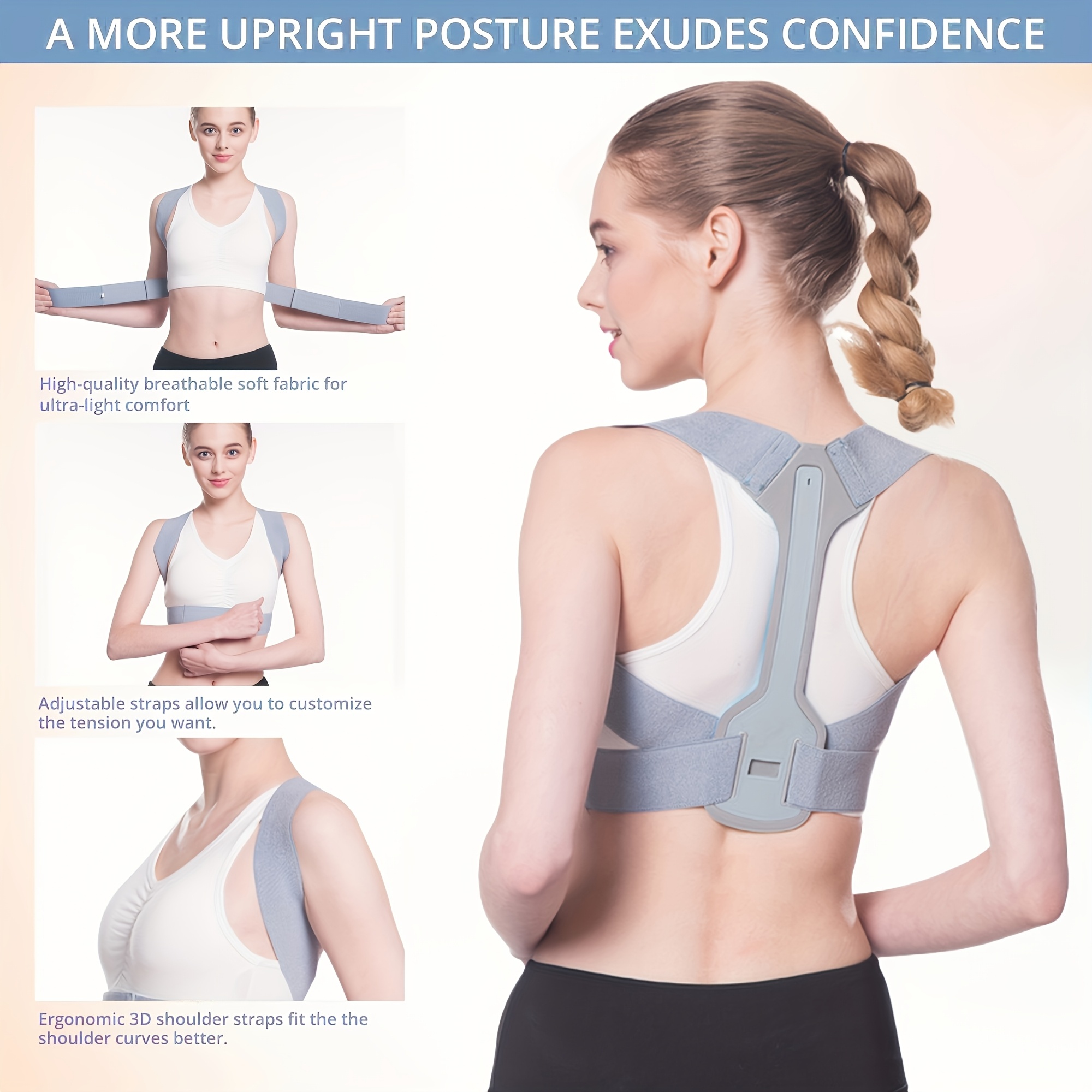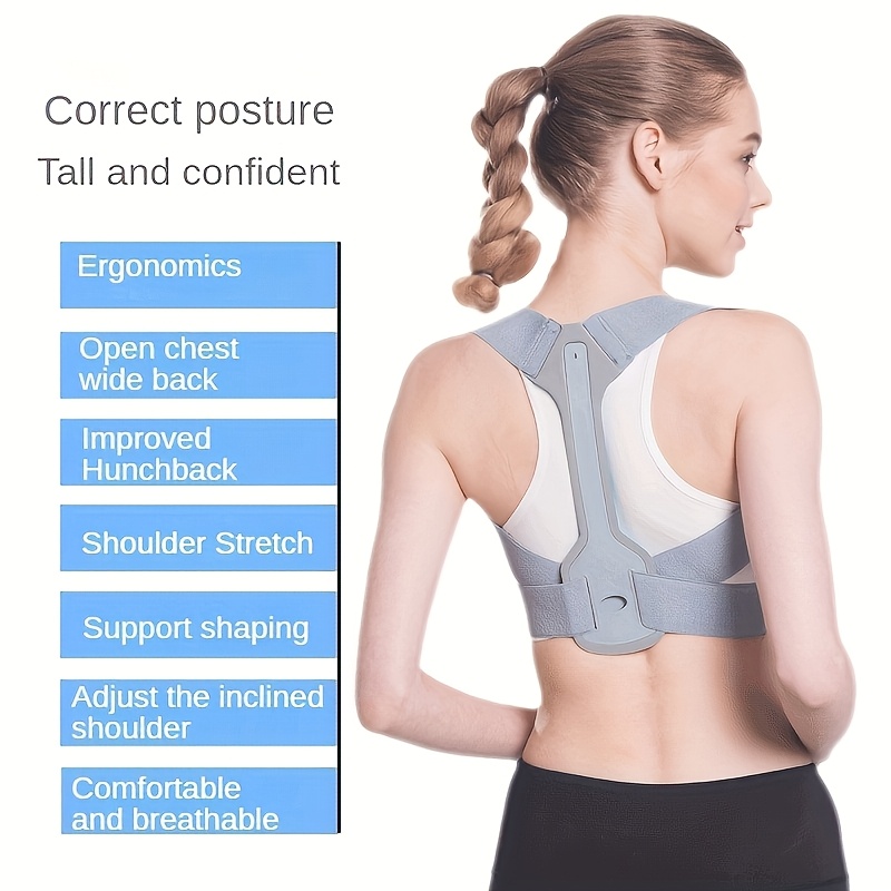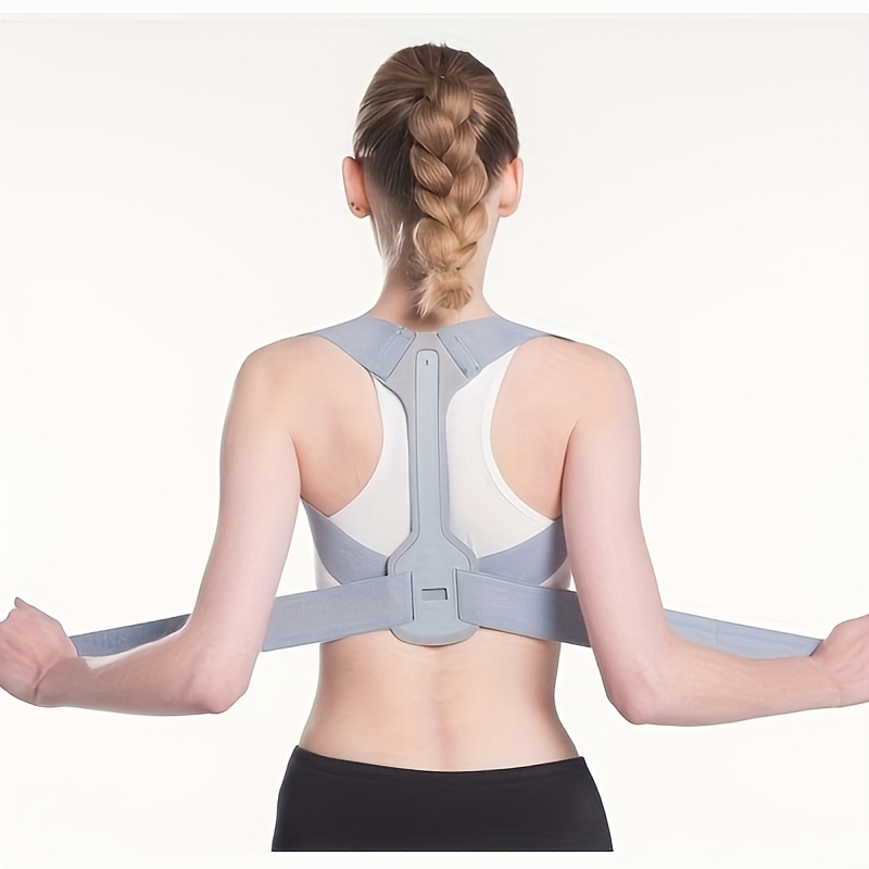 1pc Adjustable Posture Corrector Back Brace – Breathable Knit Fabric with Neoprene, Polyester & Nylon Support for Spine Alignment, Waist Protection, and Improved Posture – Gray