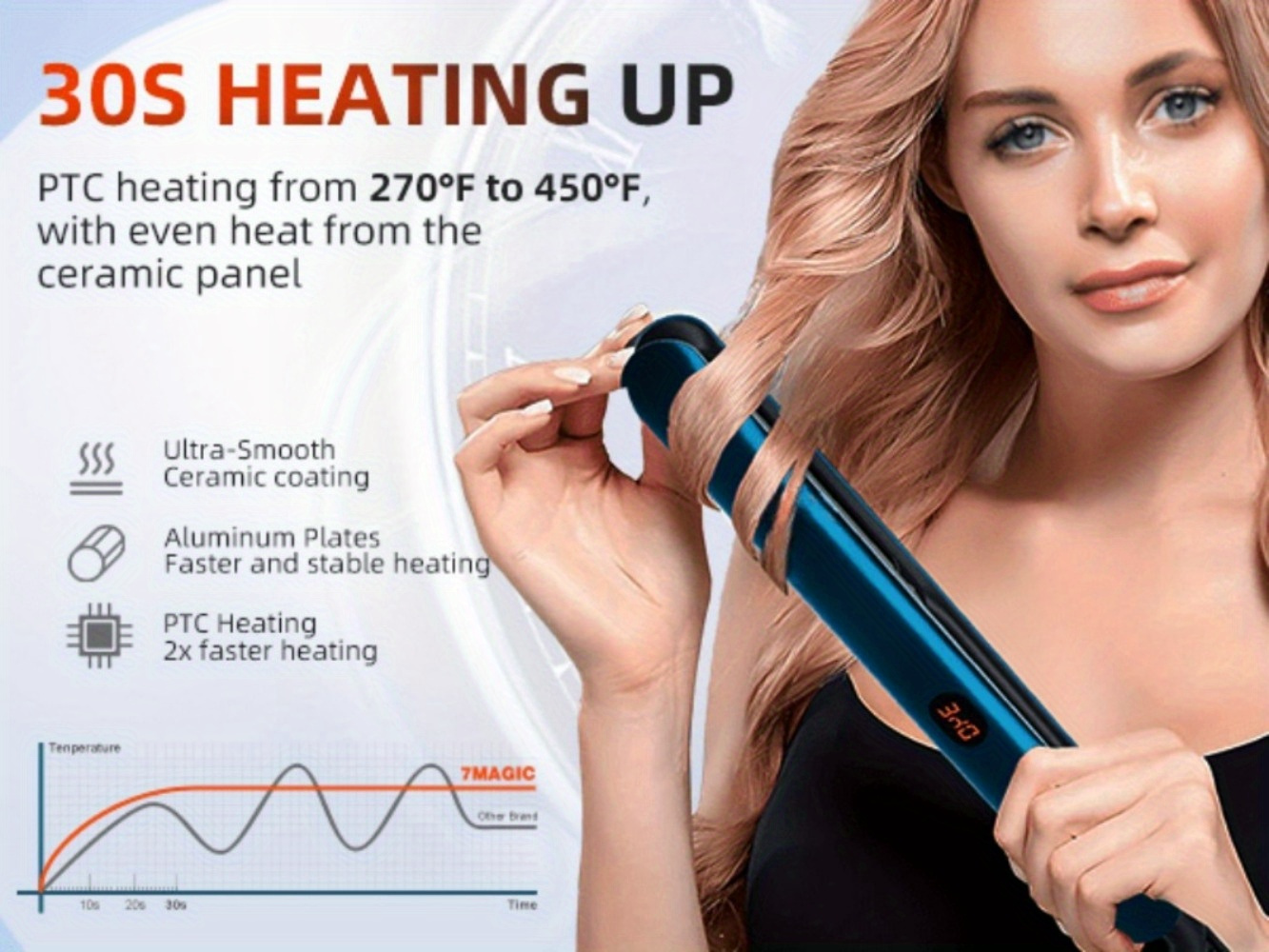 [2-in-1 Hair Styler] 2-in-1 Hair Straightener & Curling Iron | Professional 1″ Ceramic Flat Iron, Negative Ion, with LCD, for All Hair Types, 11 Heat Settings & Versatile Temperature Control, Lightning-Fast PTC, Safe and Smooth Styling Tool, for Ultimate Shine