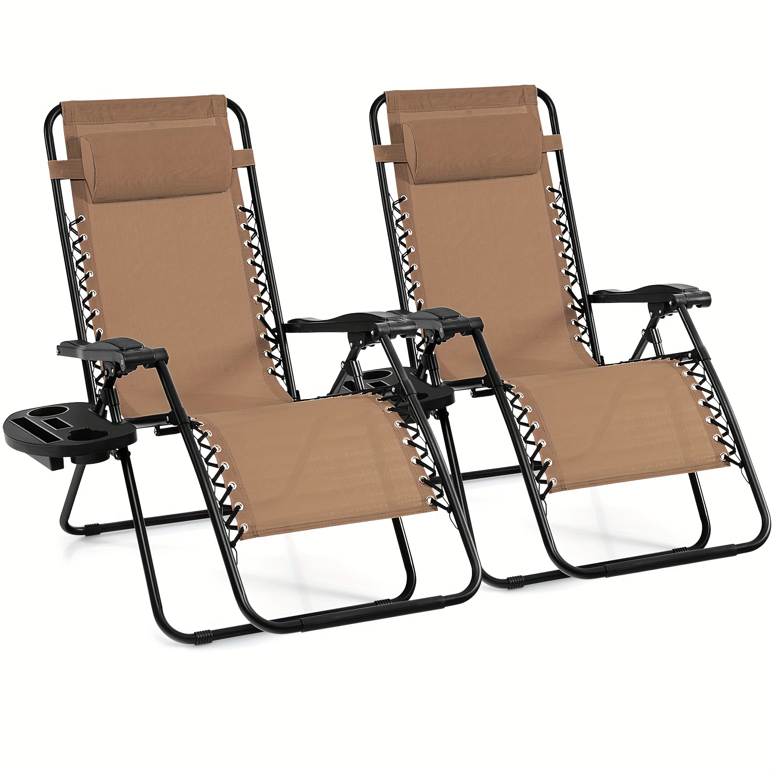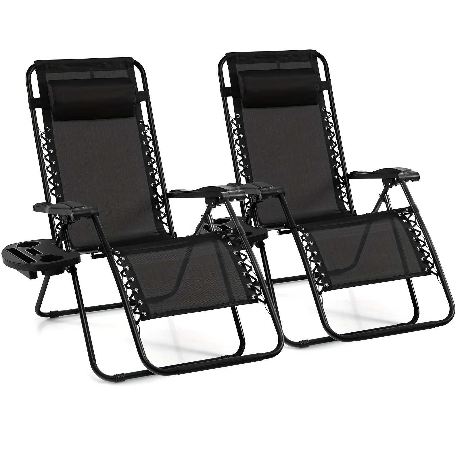 2PC Black Zero Gravity Chairs with Cup Holder, Patio Folding Recliner Lounge Outdoor