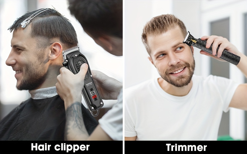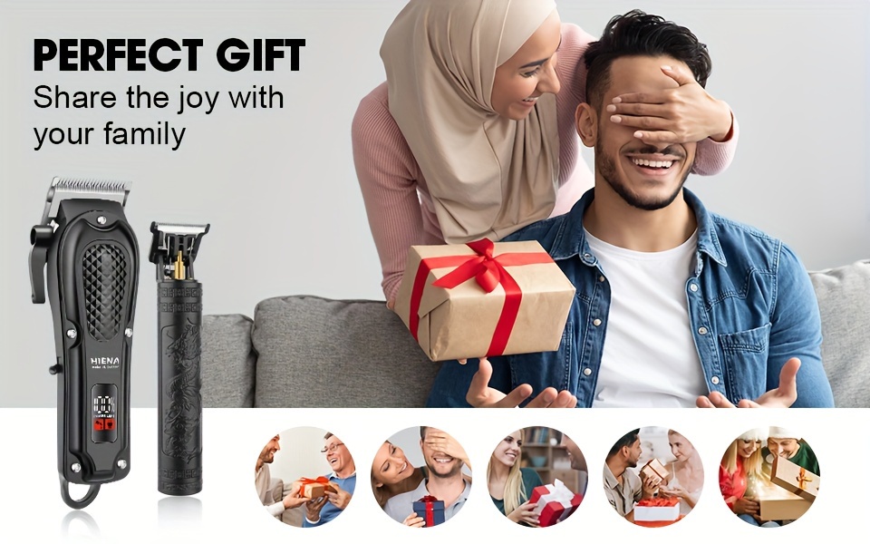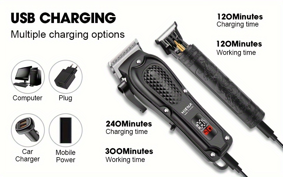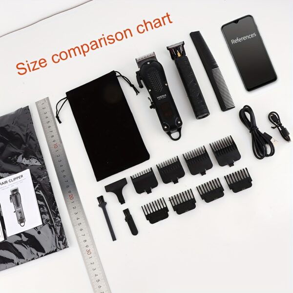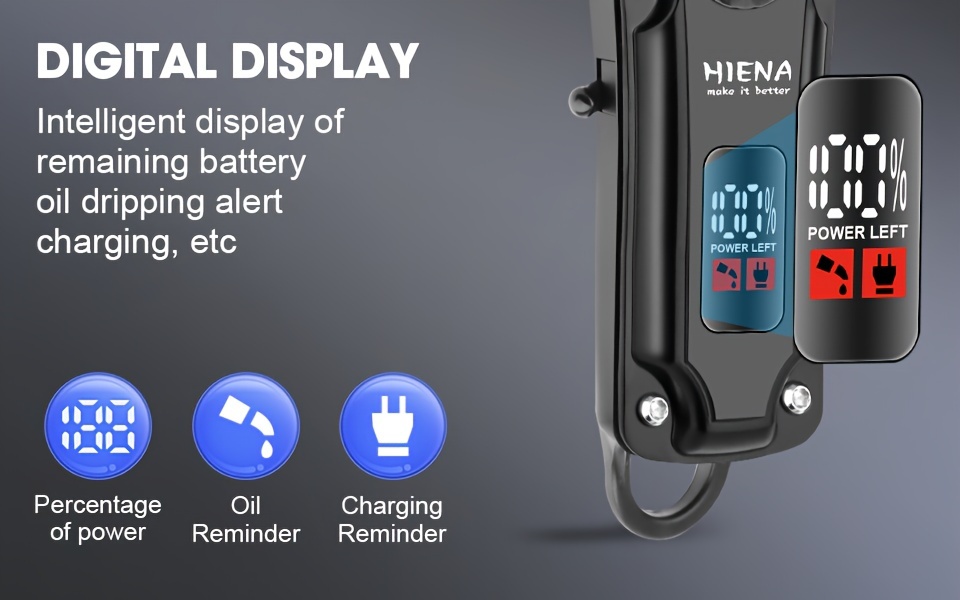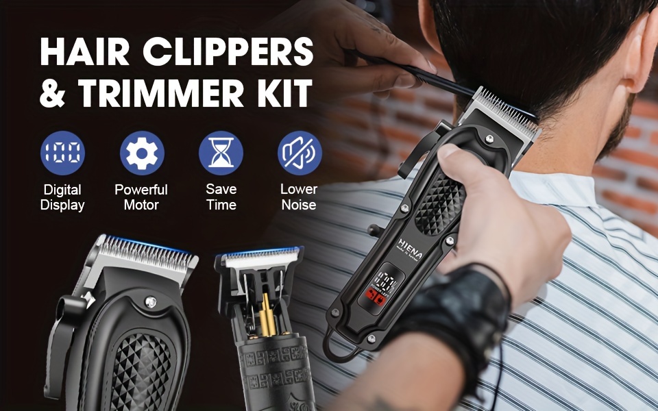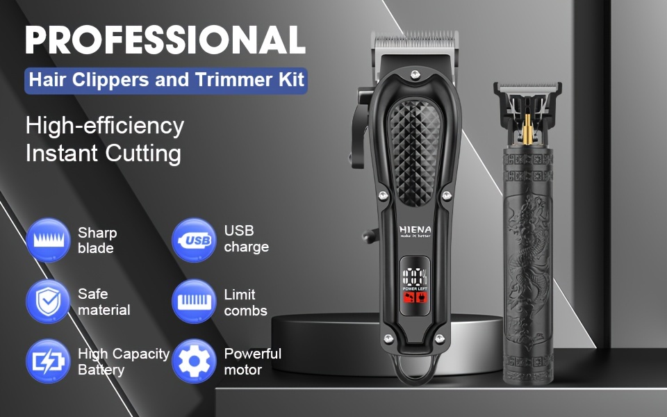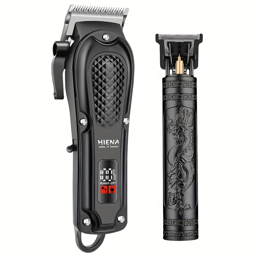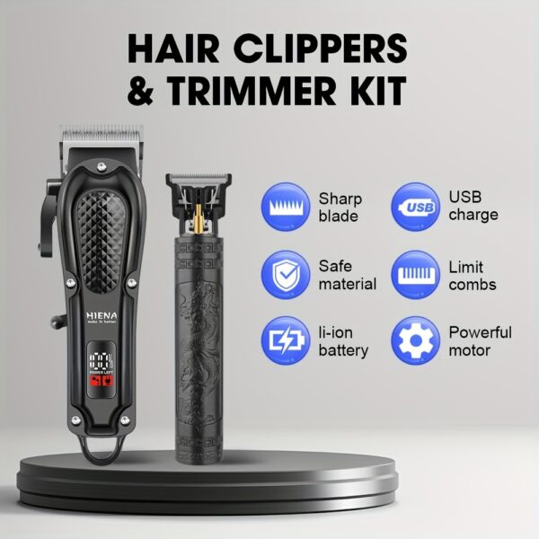 2pcs HIENA Professional Hair Clippers for Men, Cordless USB Rechargeable Lithium Battery, ABS Body, Digital Display, Carved Design, with 1200mAh Battery, for Ideal Gift for Father