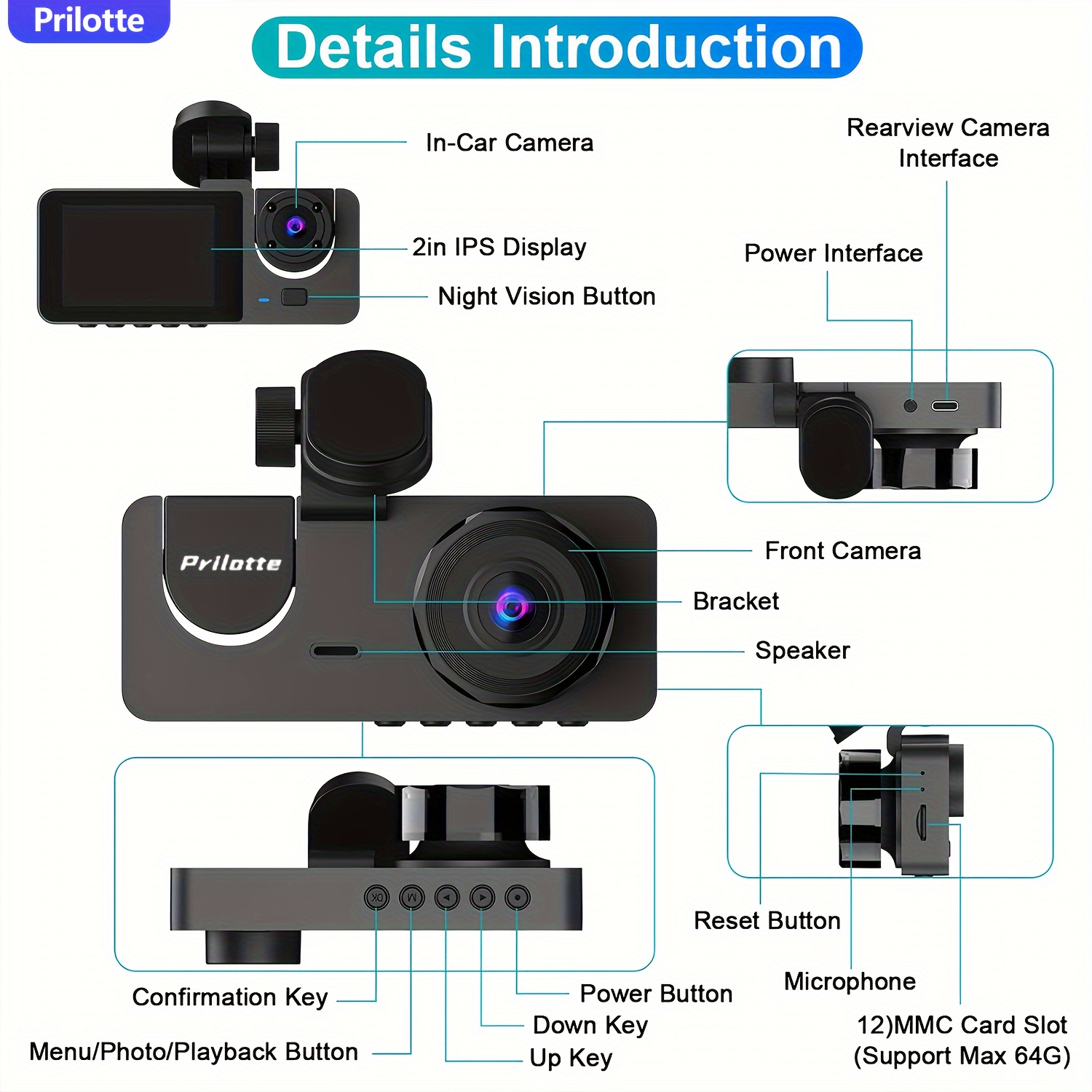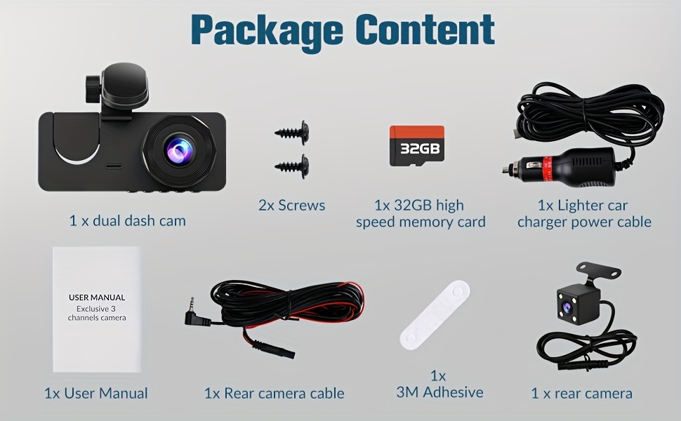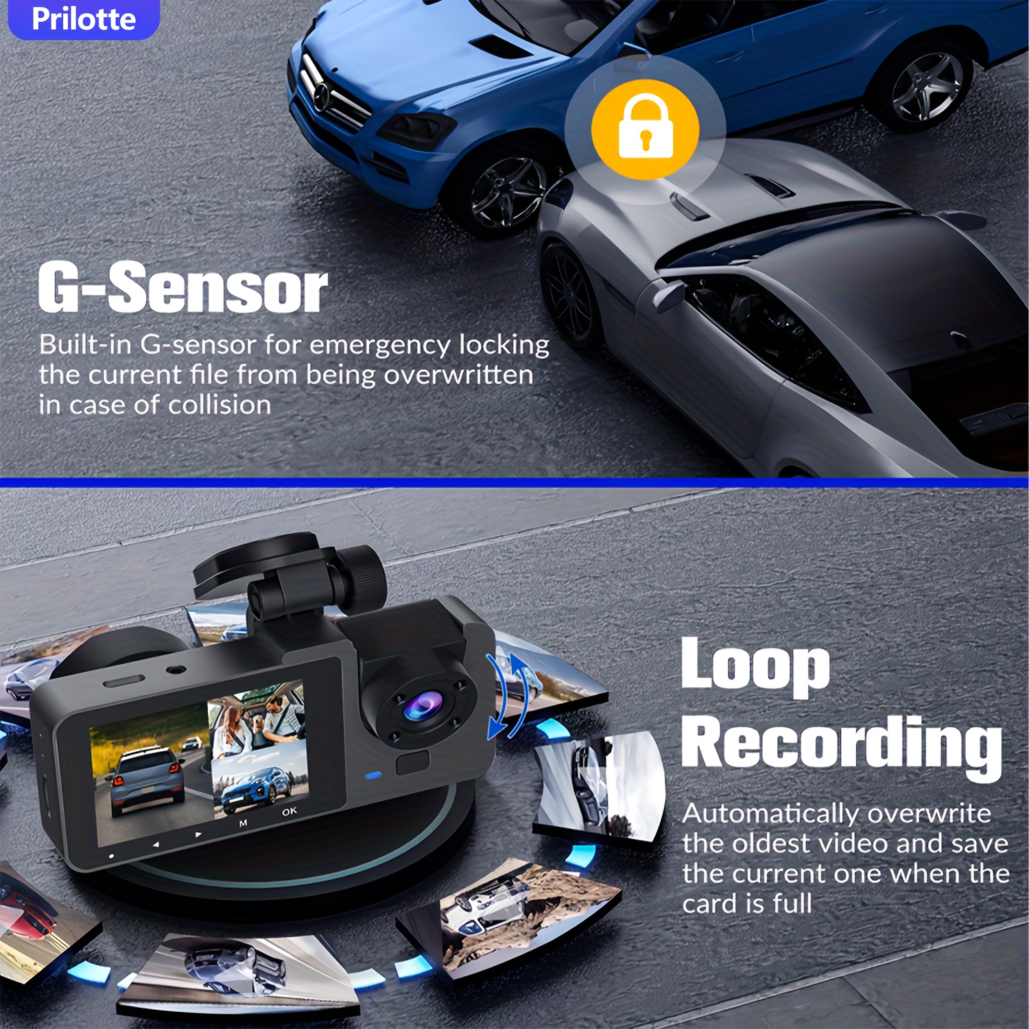 【Car Camera – Dash Cam Front and Rear】Comes with a free U3 32GB Micro-SD memory card .When the storage capacity on the memory card reaches its limit, the newly recorded recording will automatically overwrite the old recording. Triggered by the g sensor, it can automatically detect sudden vibrations/collisions and lock the lens to prevent video from being overwritten, even during loop recording.