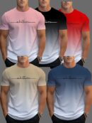 5pcs Stylish Alphabet Print Gradient Crew Neck Short Sleeve T-shirt – Men’s Casual Summer T-Shirt for Daily Wear and Vacation Resorts – Comfortable, Breathable, and Versatile
