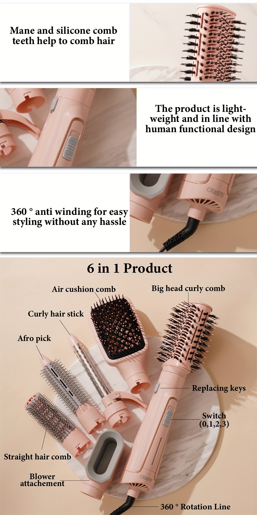 6-in-1 Multi-Functional Hot Air Styling Brush – Curl, Straighten, and Style Hair with Ease, Perfect Gifts for Women