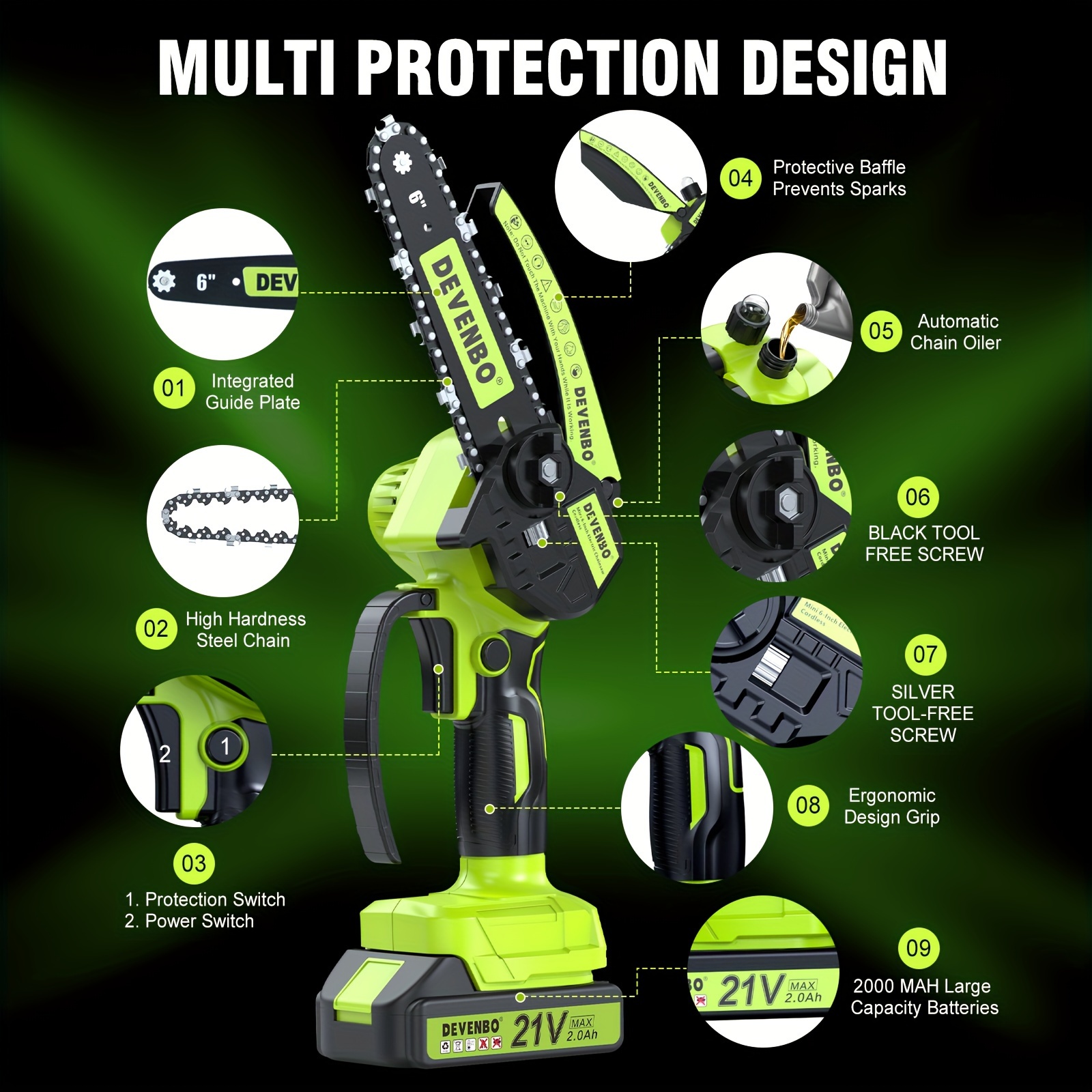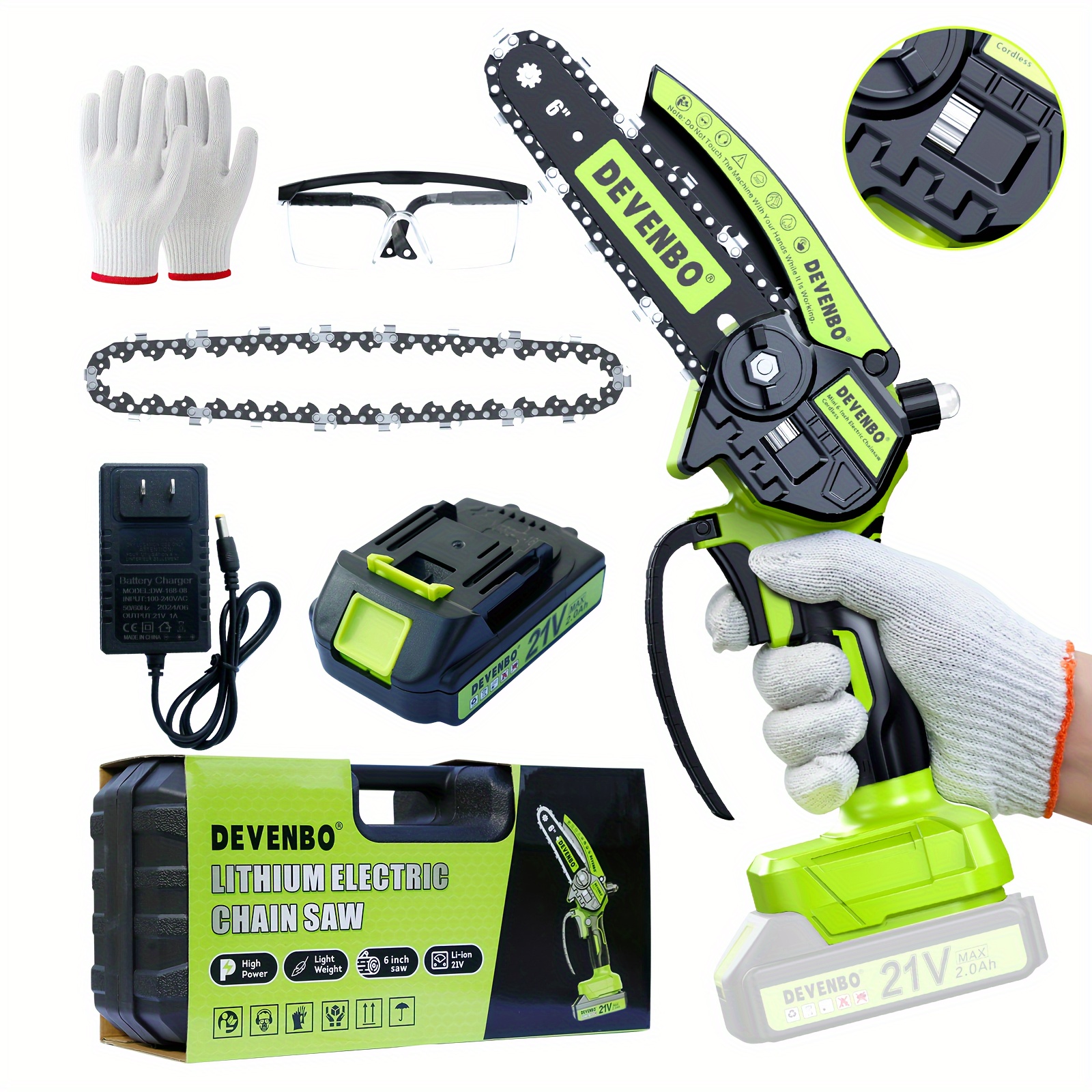 6-inch Cordless Mini Chainsaw, Handheld Electric Power Chain Saw for Tree Trimming Wood Cutting