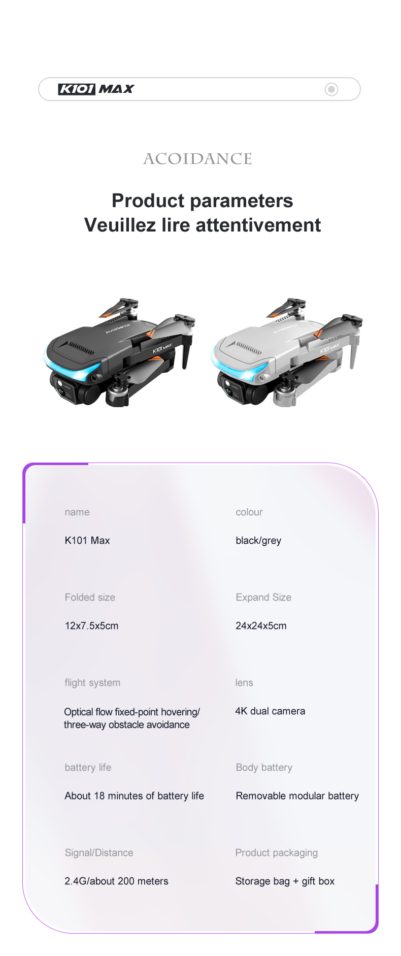– The built-in 4K pixel high-definition camera can capture amazing pictures and videos from the sky.