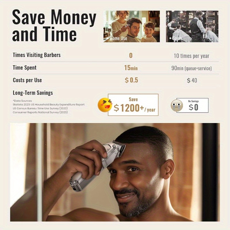 ucking for a faster, smoother, quieter shave. Long-Lasting Battery–The hair clipper can be used for 240 minutes on a single charge. The hair trimmer can be used for 180 minutes on a single charge. Cordless design for indoor and outdoor use. In addition, with a 3s child lock function to prevent automatic start, more convenient to carry out. Save money from weekly barber, this cordless hair clippers is suitable for the whole family to use. Because of the silence and blade safety