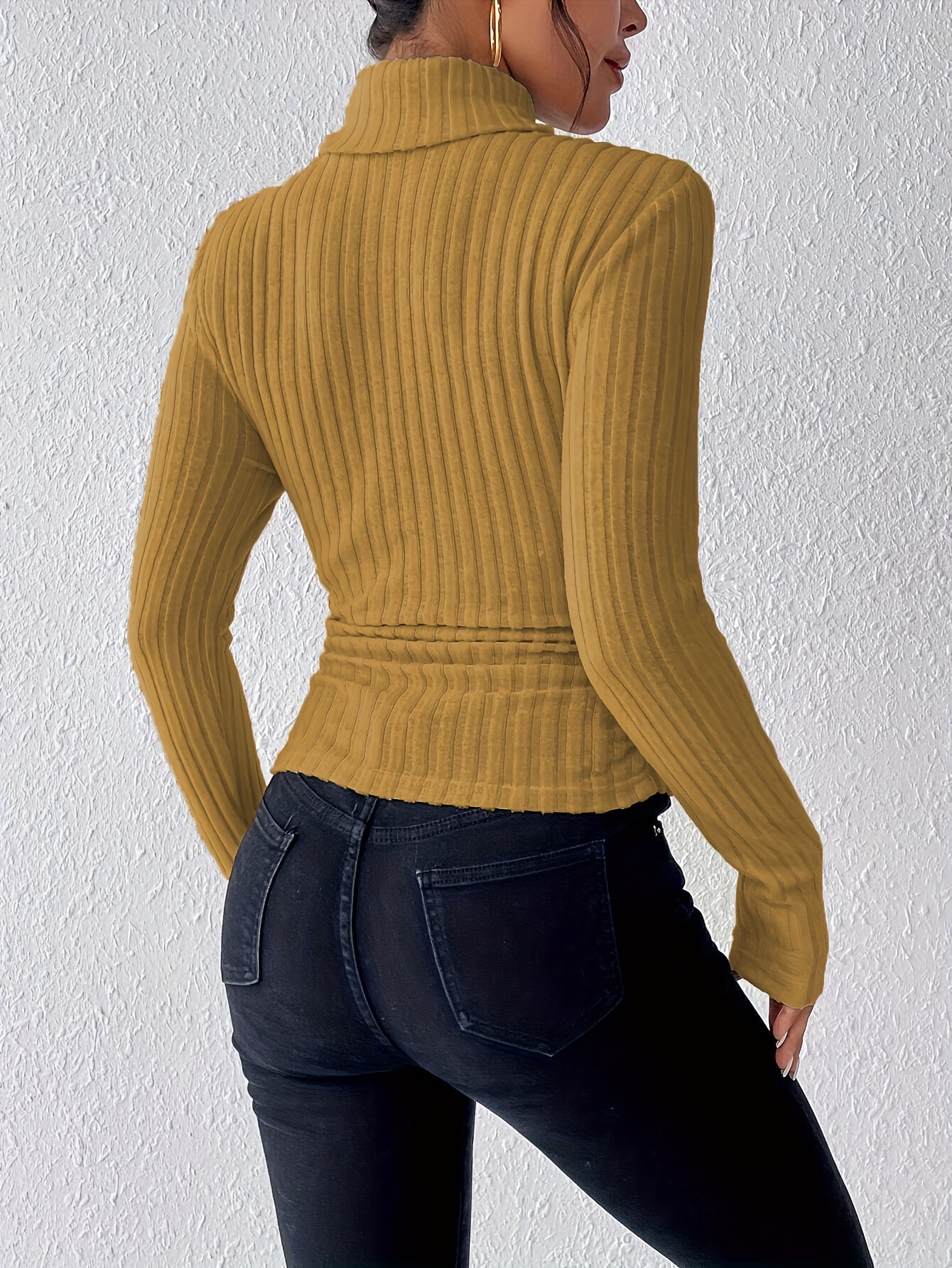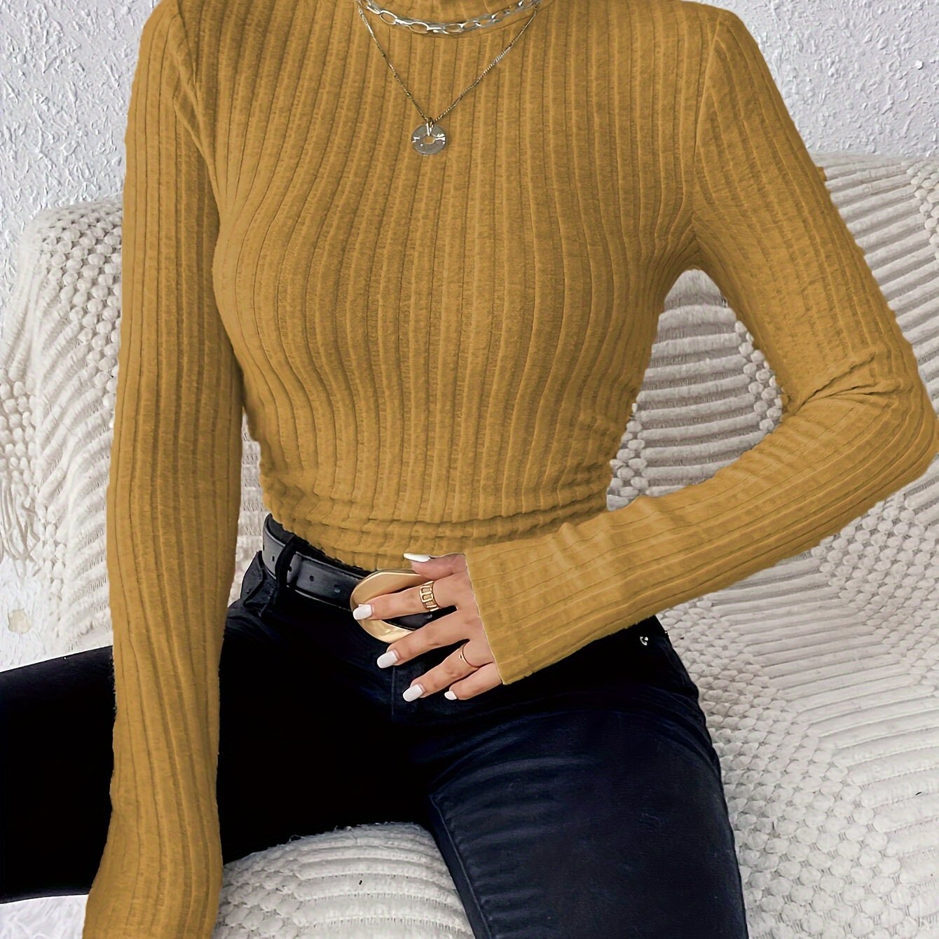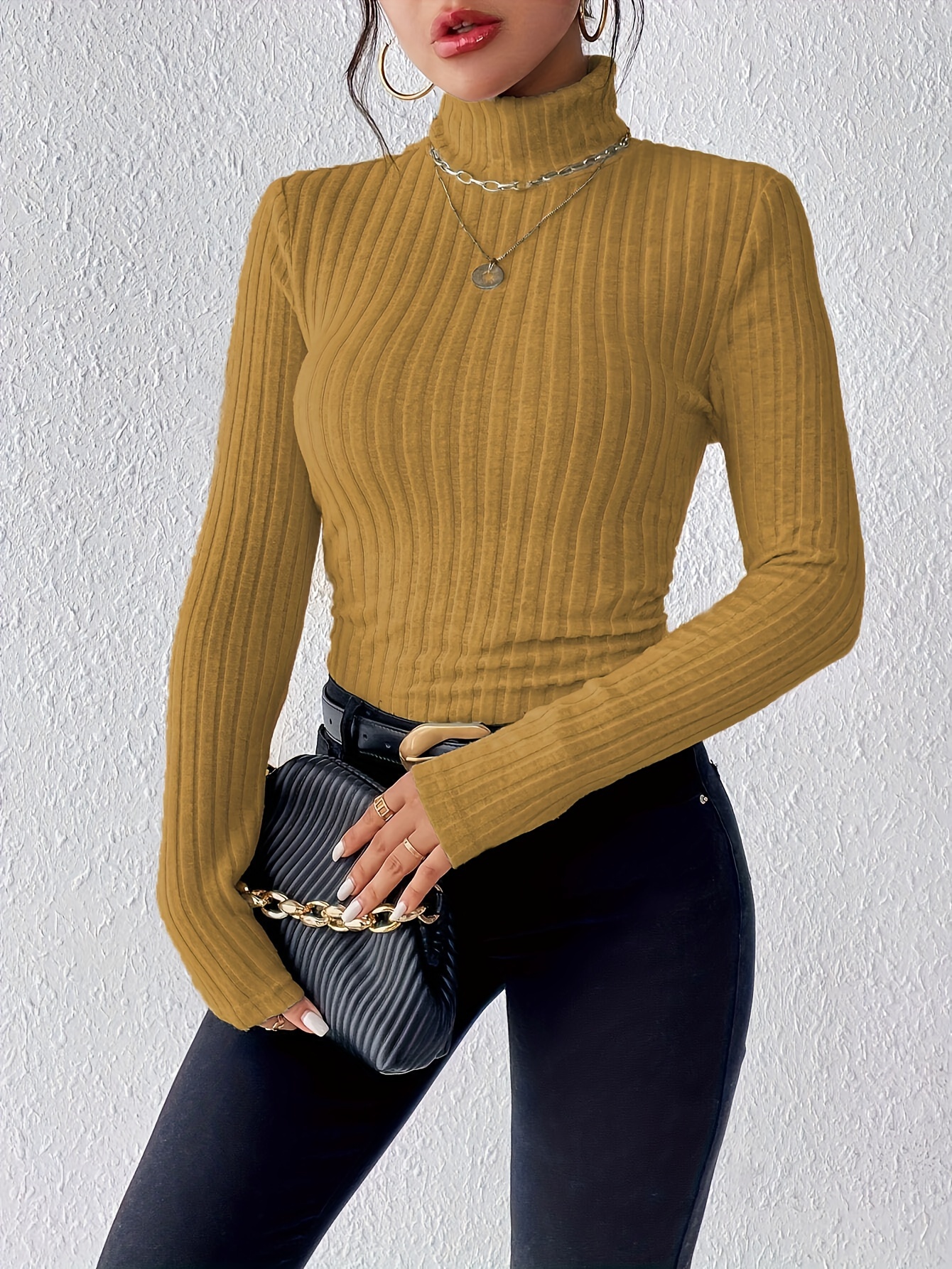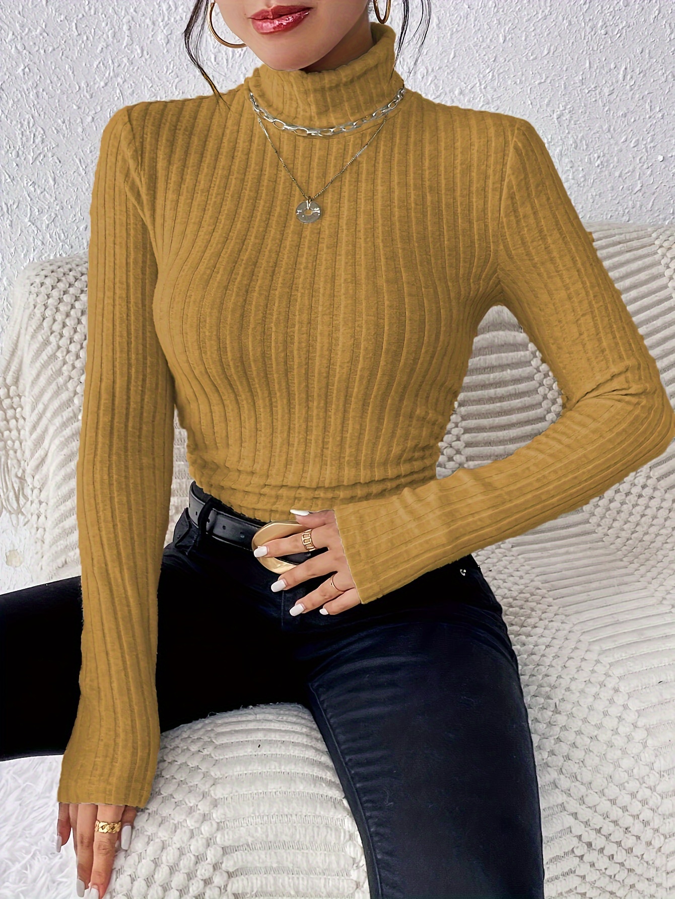 Cozy Turtle Neck Slim Fit Sweater – Pullovers for Women – Soft, Elegant Solid Color Long Sleeve Sweater for Fall & Winter, Comfortable Everyday Wear with Classic Style