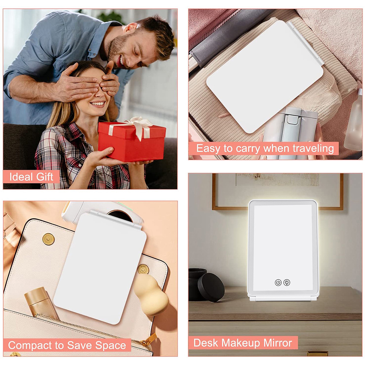 [Ideal Gift for Women] The makeup mirror is made of high quality ABS and glass, perfect appearance and scratch resistant. This lighted mirror is a perfect gift for birthday, anniversary, Thanksgiving, Christmas or other special occasions. It can bring unexpected surprises to your mother, sister, girlfriend, friend, etc.