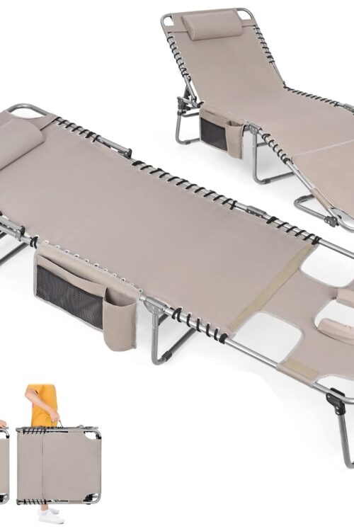 - 【TANNING CHAIR WITH FACE HOLE】This tanning chair features a convertible open/close face-down hole, arm slots, and a pillow. A practical sunbathing lounge chair for outside, poolside, patio, lawn, garden, beach, and more. It can be used as a camping cot, lounge chair, or guest bed.
