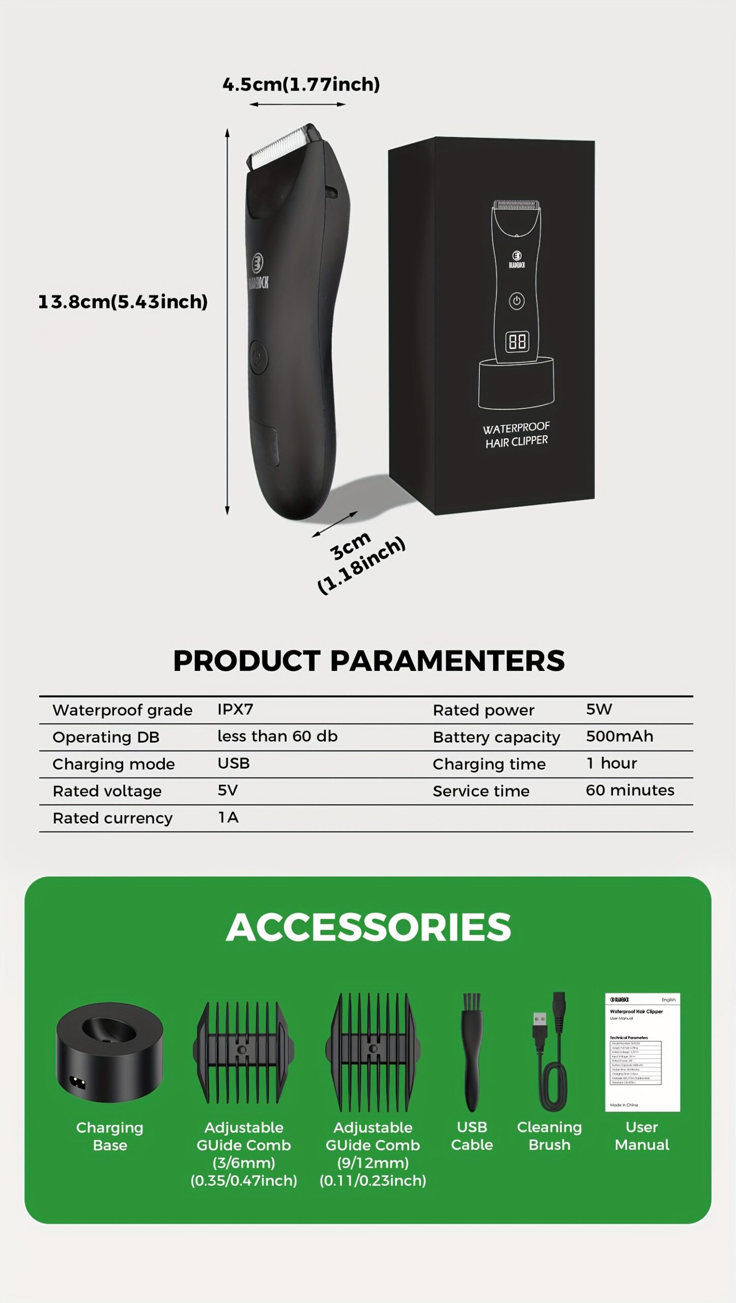 Professional Body Hair Trimmer, with Replaceable Blades. LCD Display, Men’s Groin and Body Hair Trimmer, Electric Ball Razor with Interchangeable Ceramic Blades Beautician, Beauty Clipper for Male Shaving, Best Gift for Loved Ones