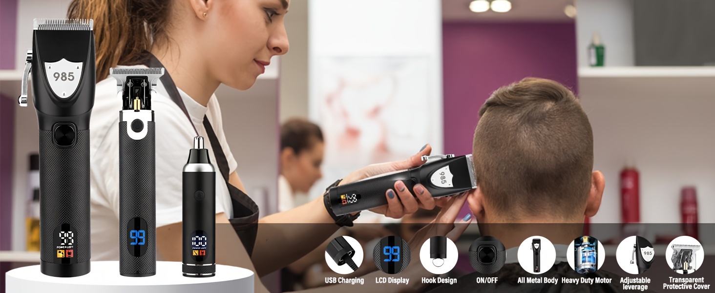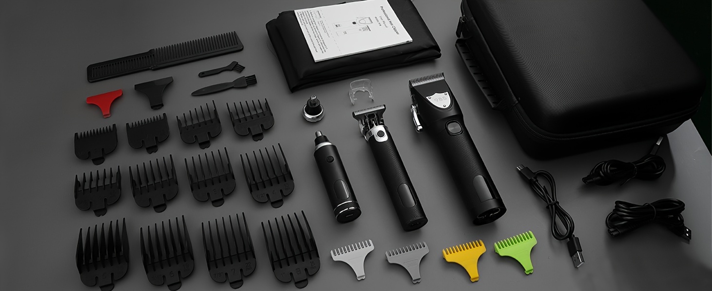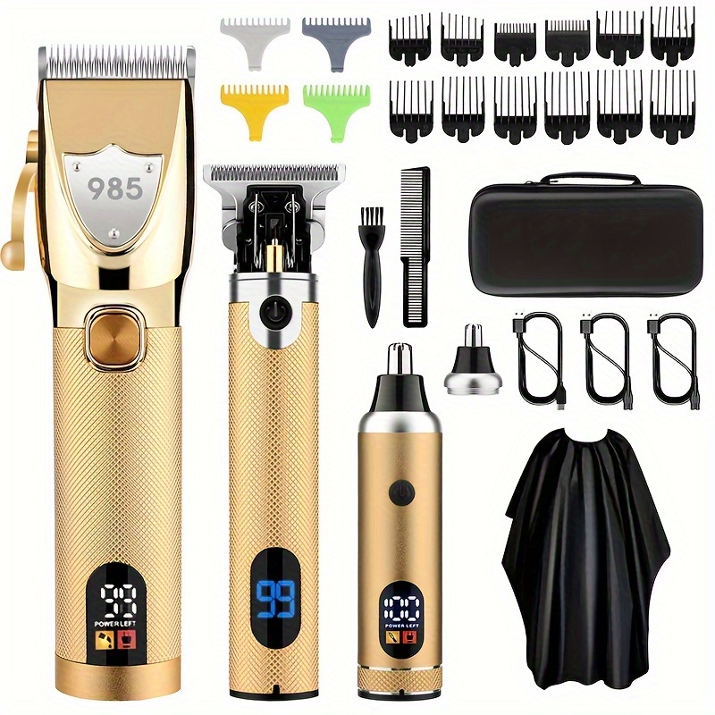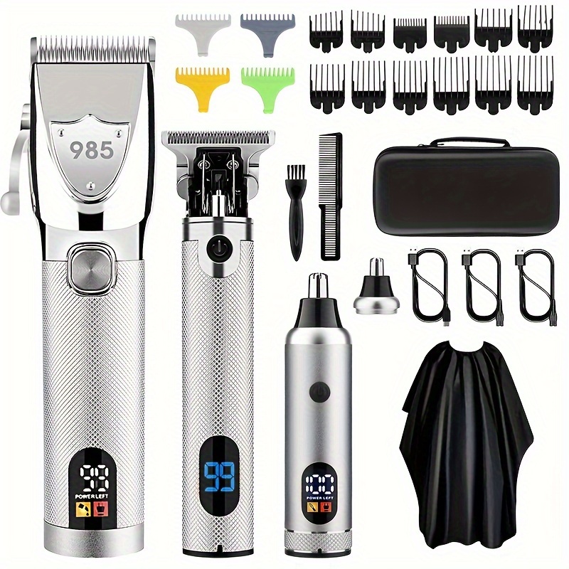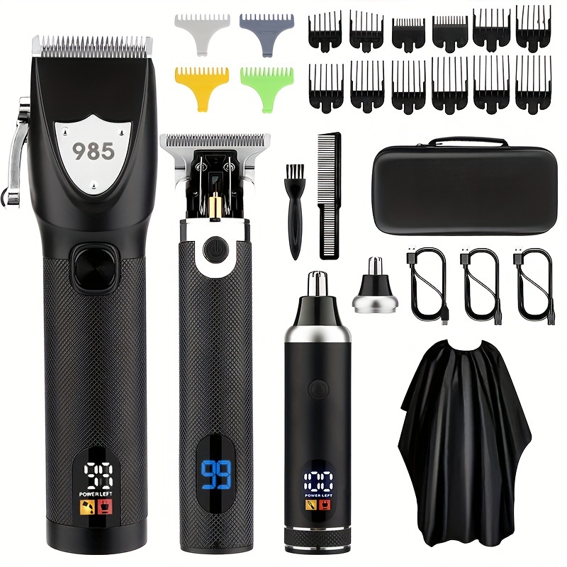 Professional Cordless Hair Clippers Set, Nose & Beard Trimmer, T-Shaped Hair Clippers with Protective Guard for Men