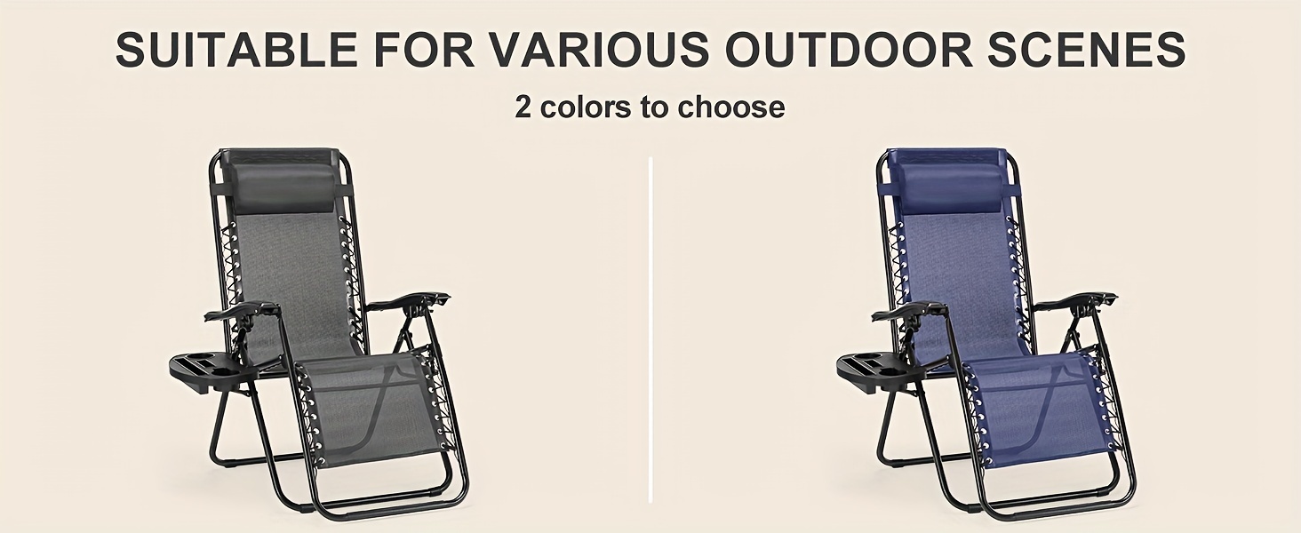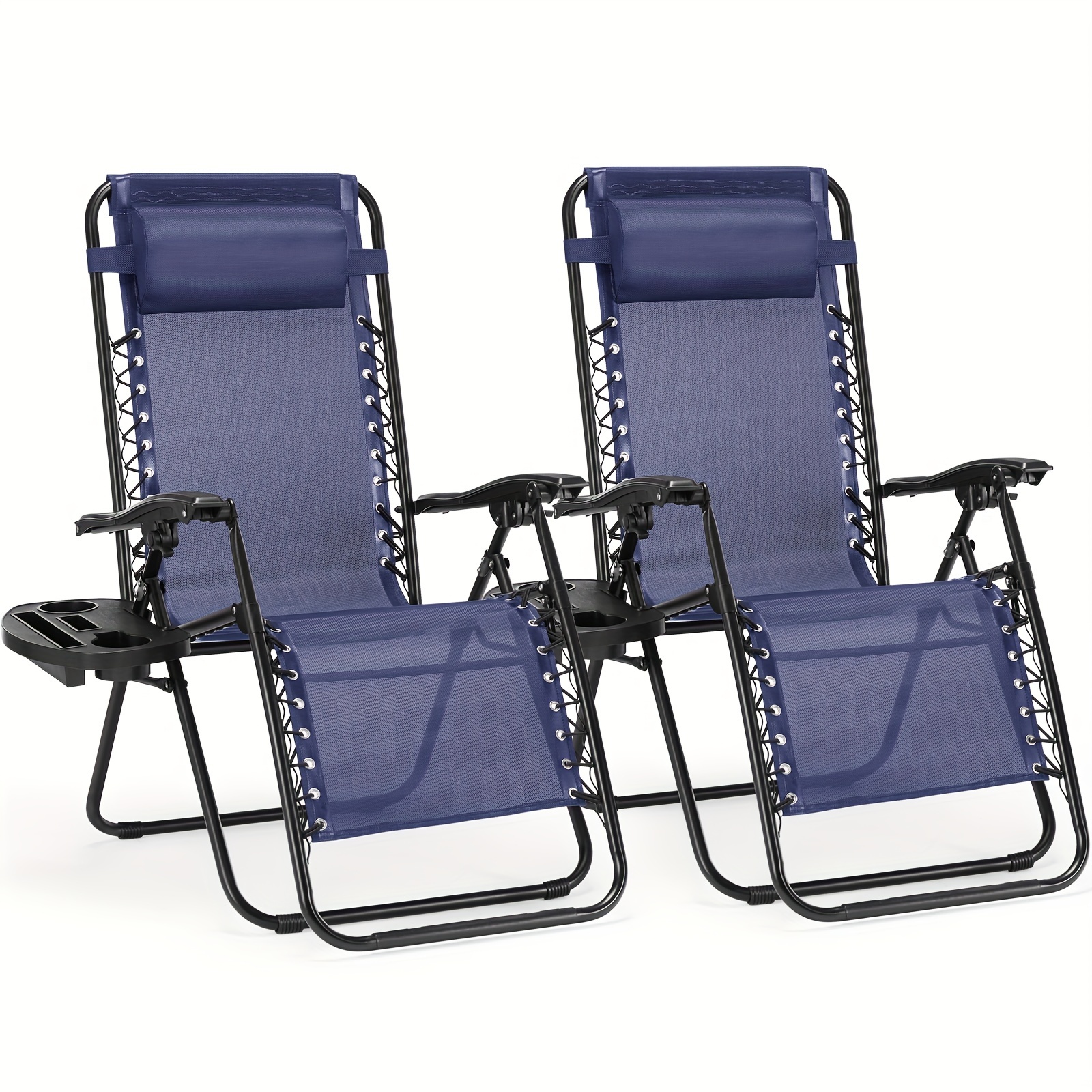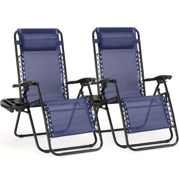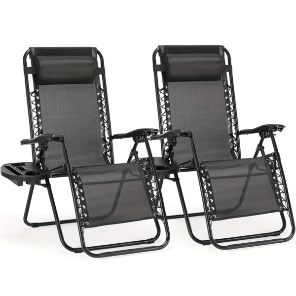 Set Of 2 Portable Recliner Chair Indoor, Beach Camping Patio Chair, Outdoor Folding Lounge Chair Indoor With Cup Holder Trays And Adjustable Pillow For Sleeping, Zero Gravity Chairs For Home Office, Rest, Poolside, Garden, Backyard, Lawn