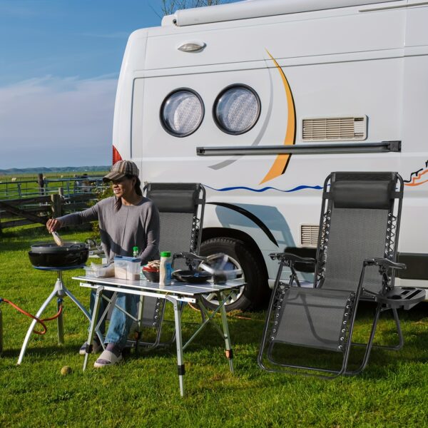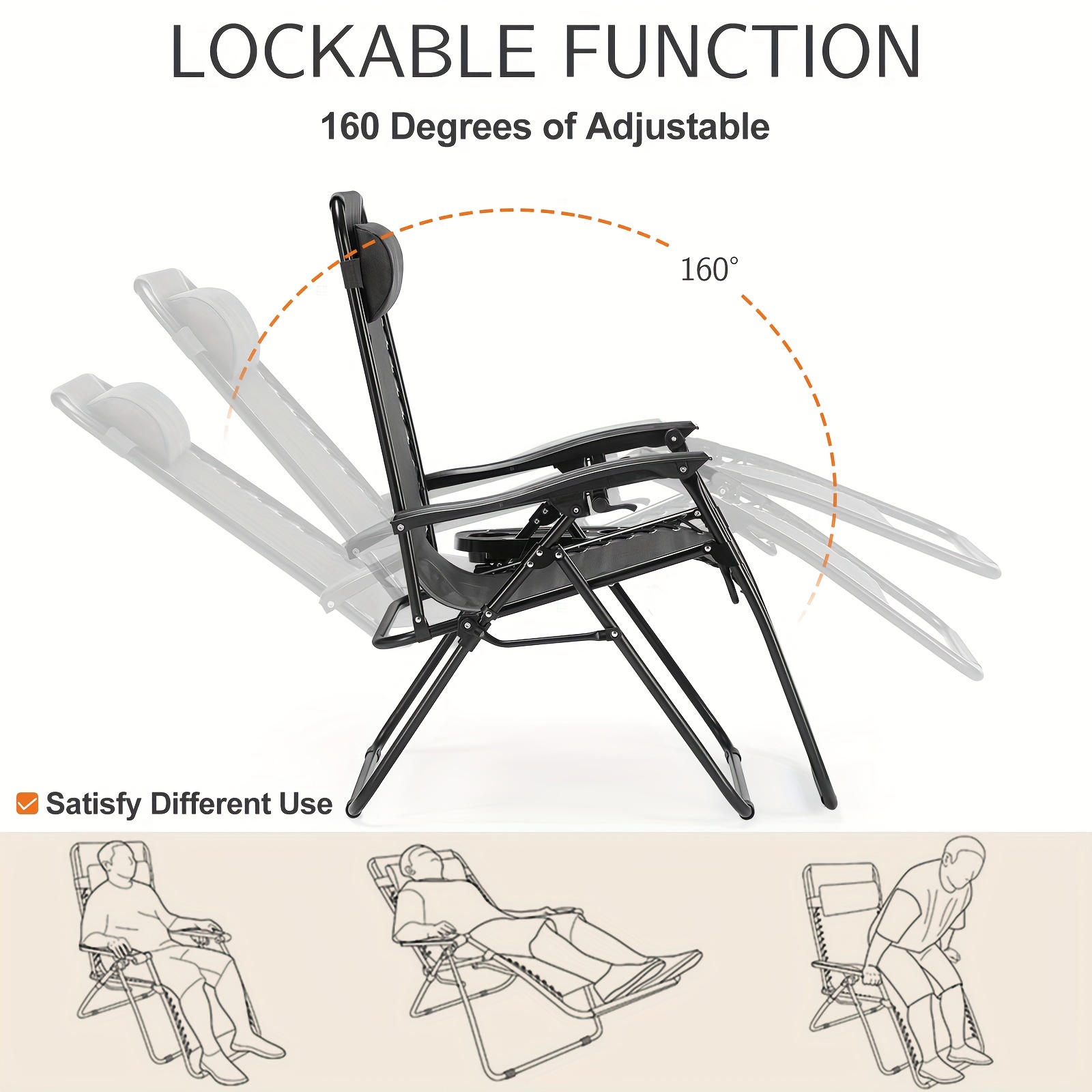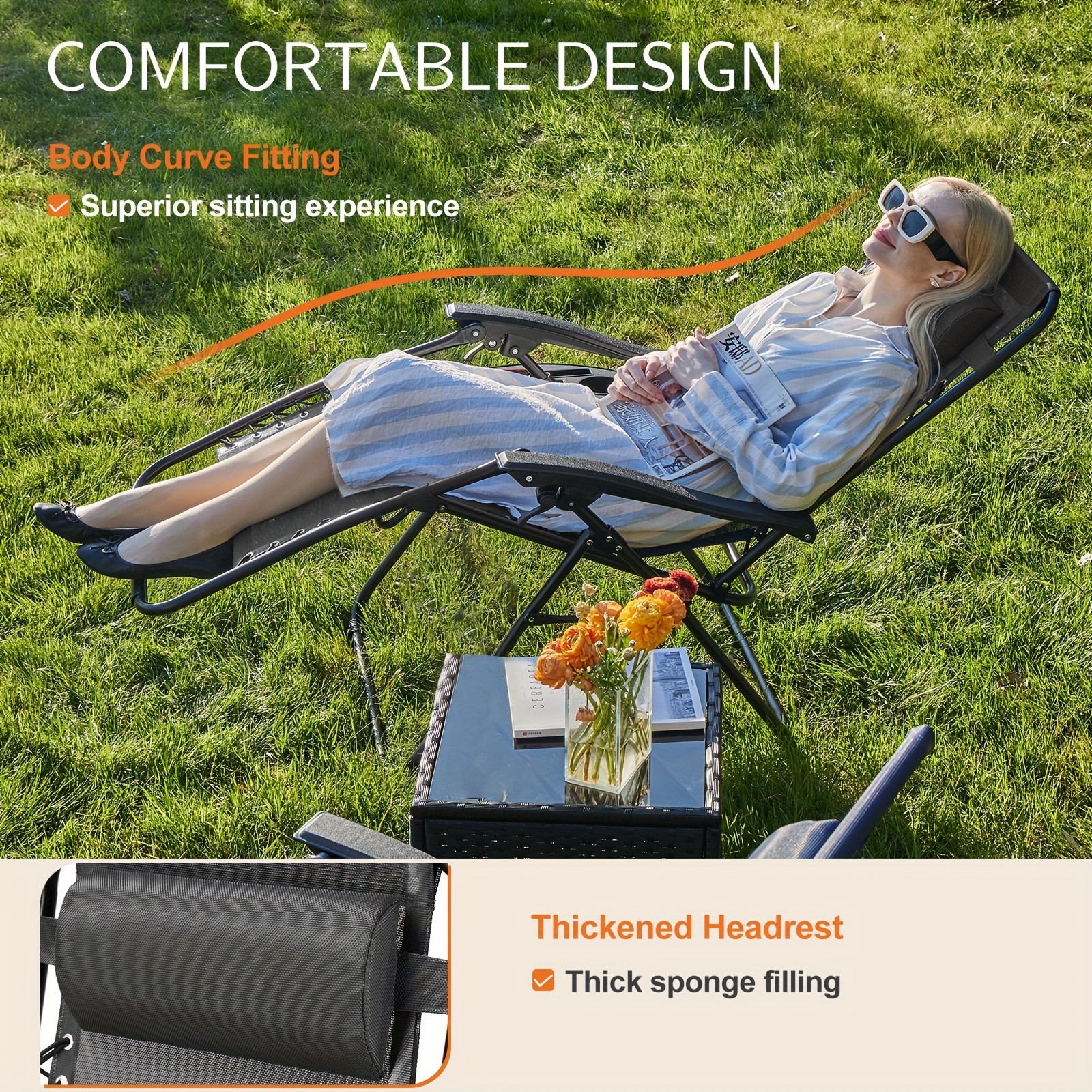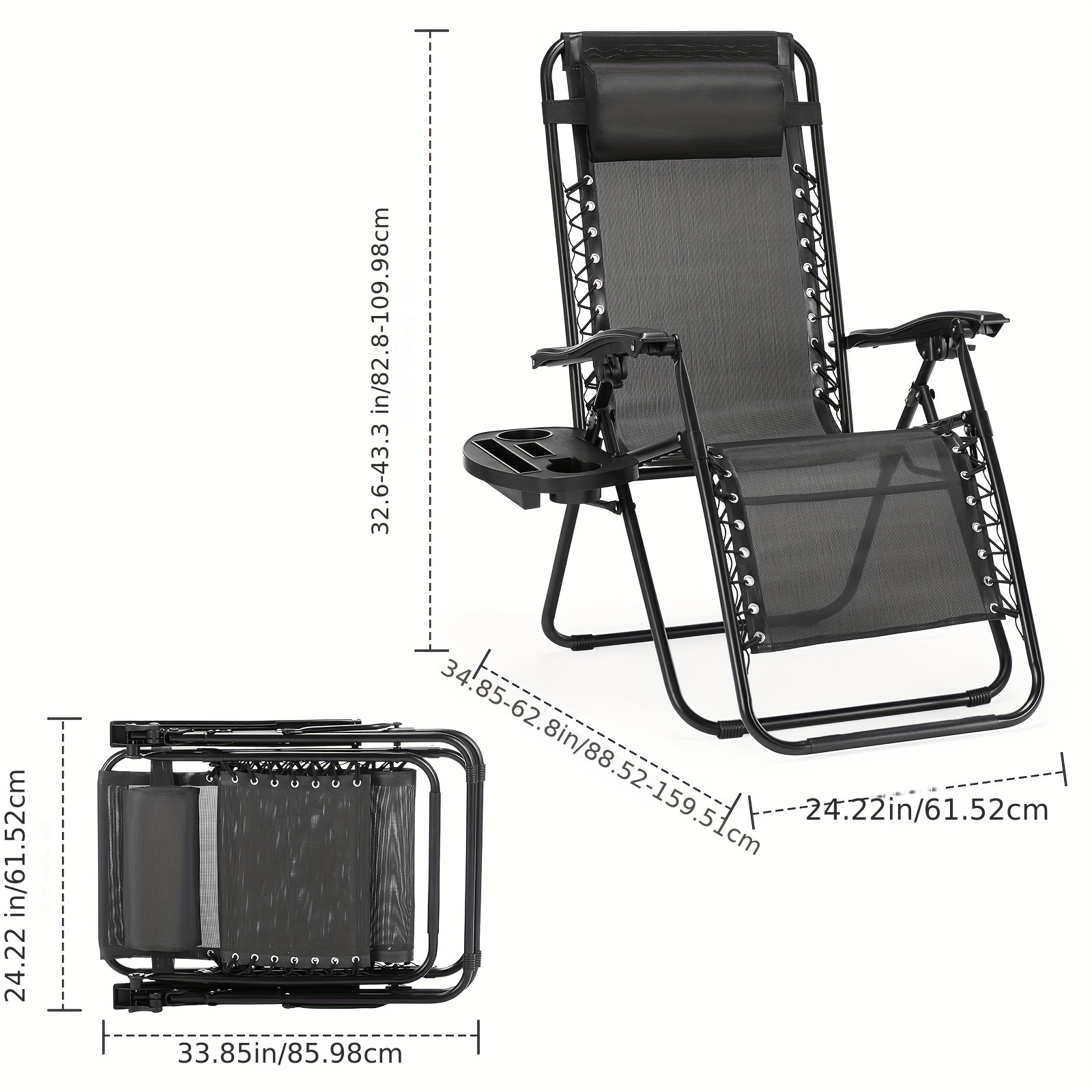 Set Of 2 Portable Recliner Chair Indoor, Beach Camping Patio Chair, Outdoor Folding Lounge Chair Indoor With Cup Holder Trays And Adjustable Pillow For Sleeping, Zero Gravity Chairs For Home Office, Rest, Poolside, Garden, Backyard, Lawn