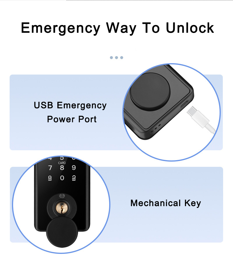 Type E : Support Tuya APP (Bluetooth) / Fingerprint / Password / IC Card / Key