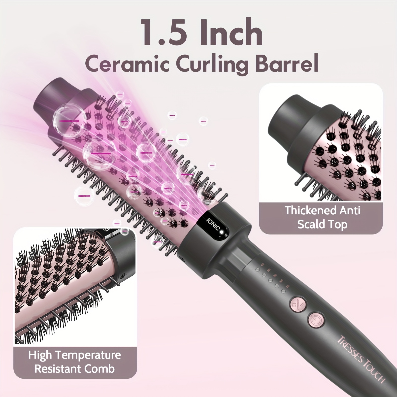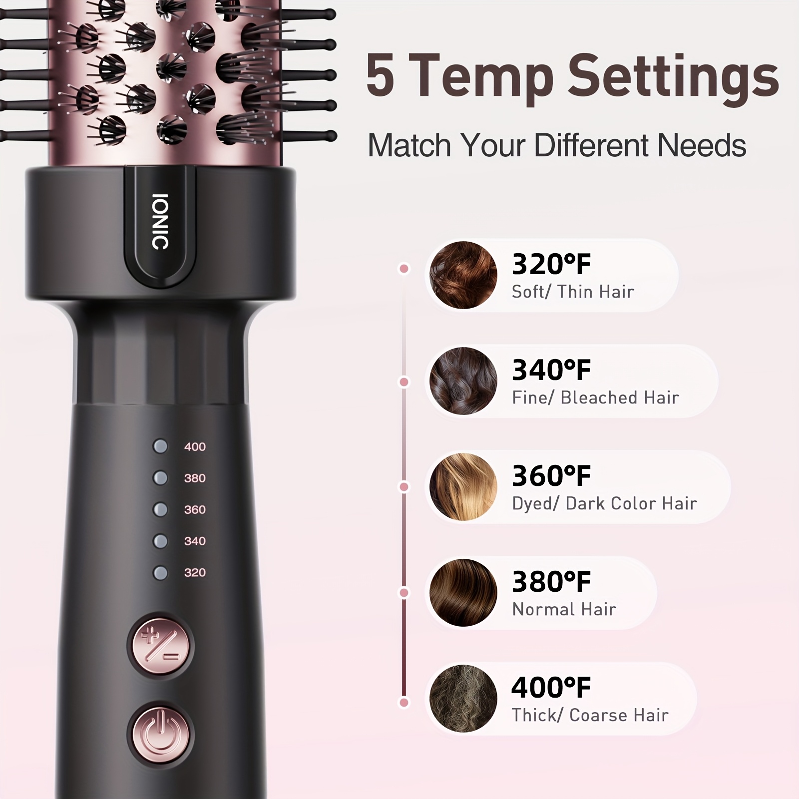 Thermal Brush Blowout 1.5 Inch With 5 Temp Settings, Universal Voltage Thermal Round Brush Suitable For Medium And Long Hair, Rose Golden
