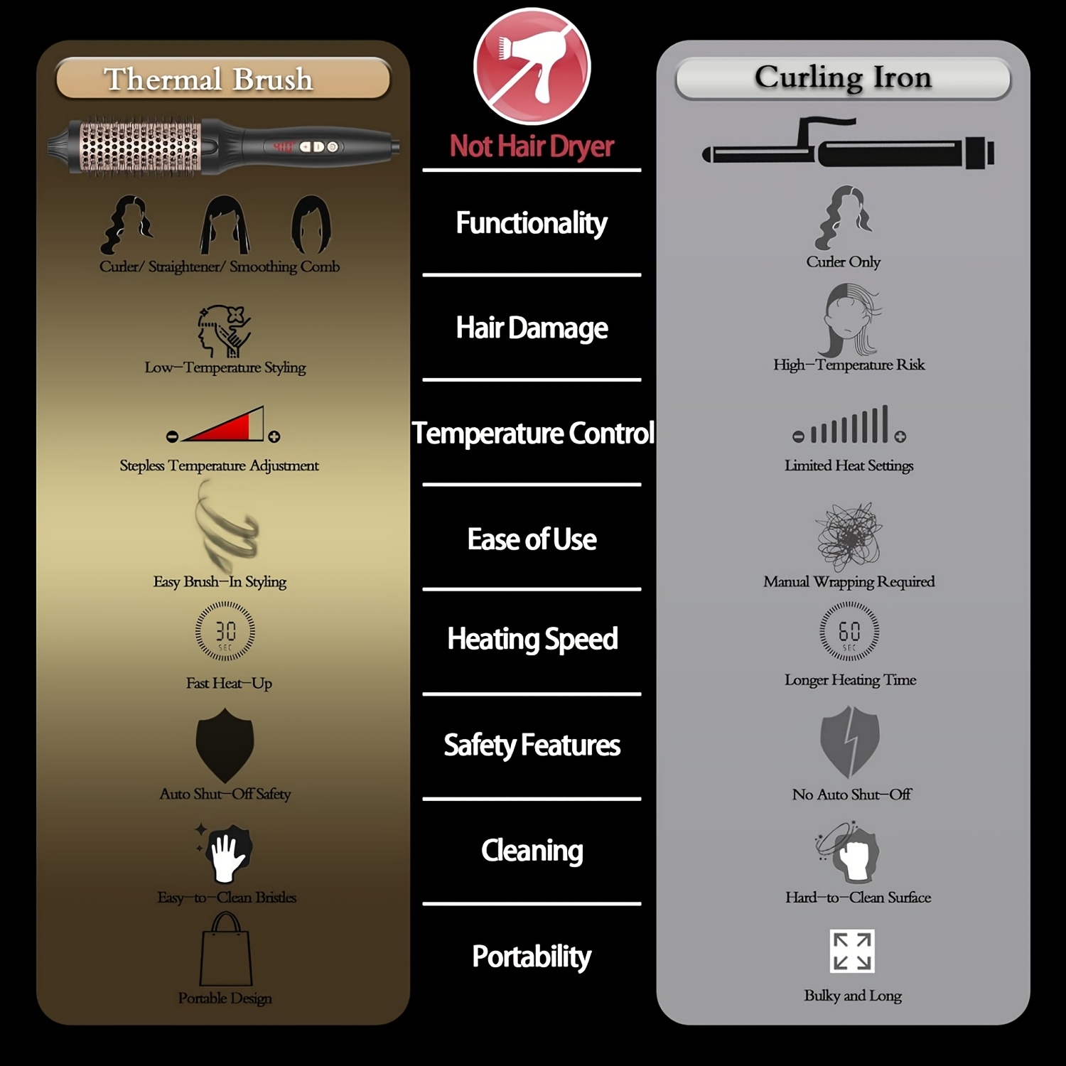 Multifunctional Styling: Combines a round brush, hair straightener, and thermal curling brush for versatile hairstyles like straight hair, loose curls, and waves