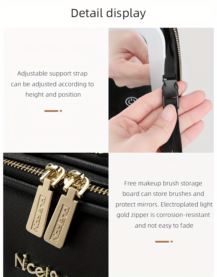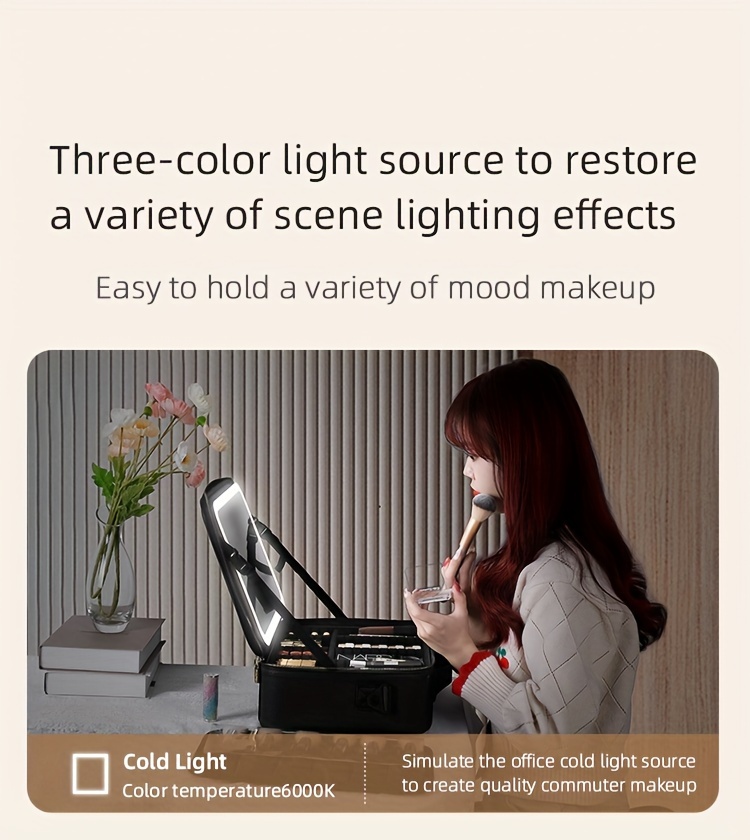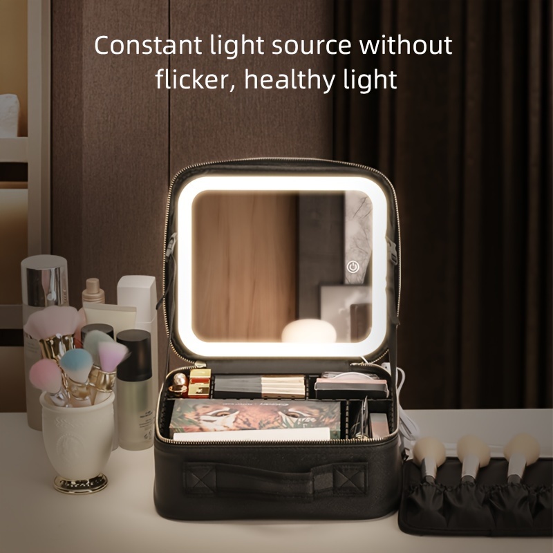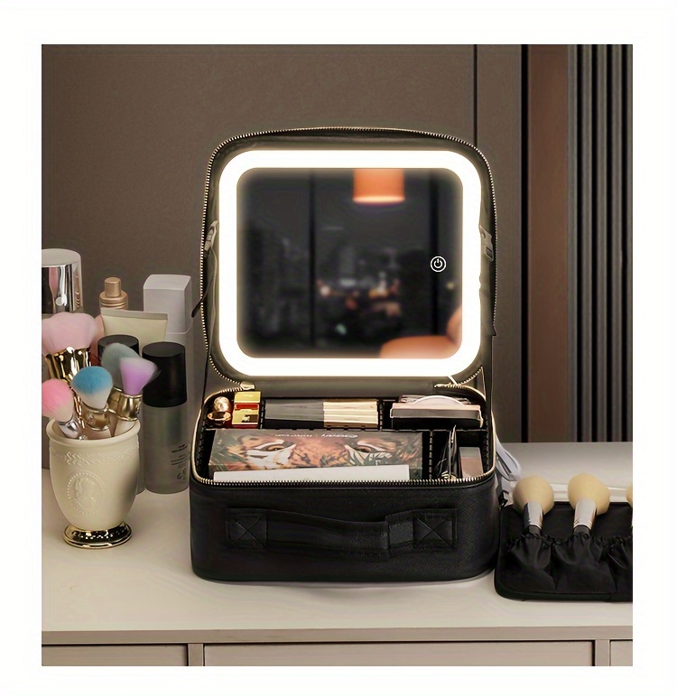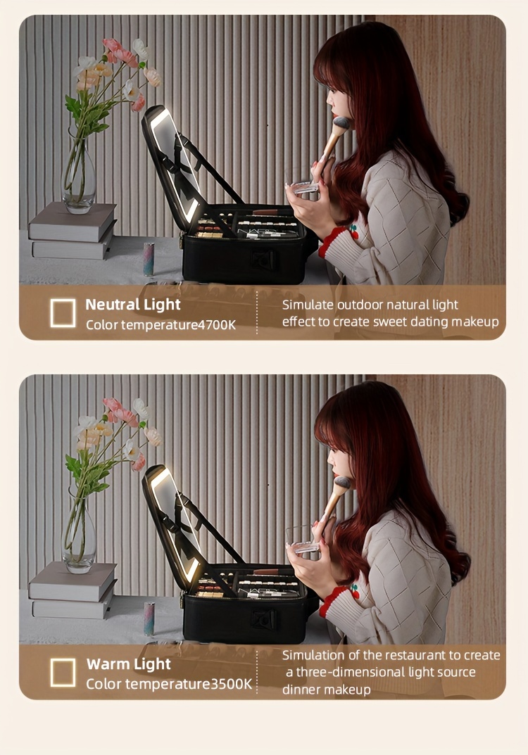 Travel Makeup Bag With LED Lighted, Make Up Case With Mirror 3 Color Setting Cosmetic Makeup Box Organizer Vanity Case With Adjustable Dividers For Women Beauty Tools Accessories