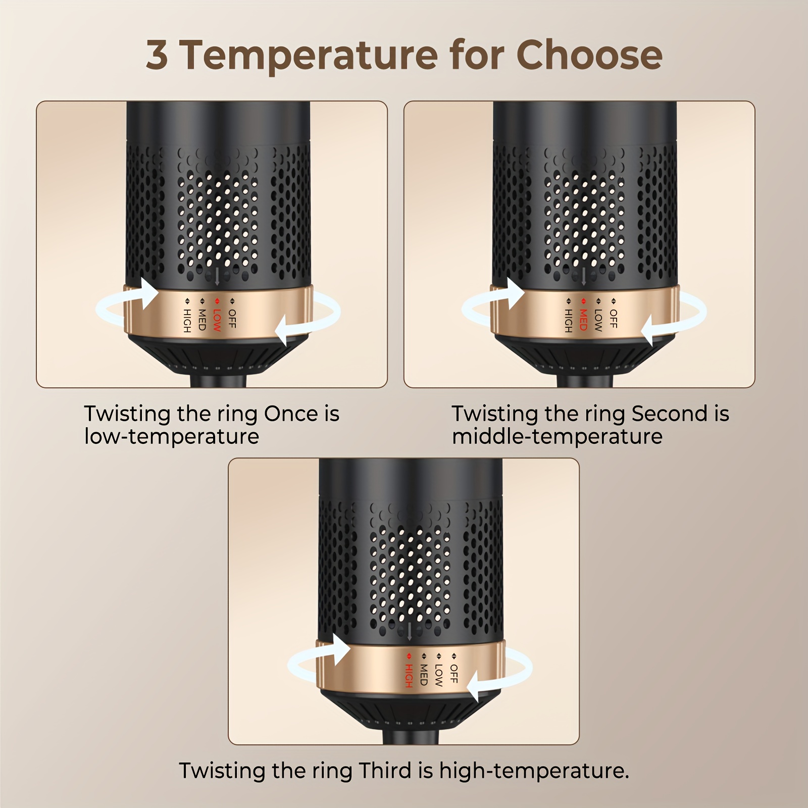 FLEXIBLE HAIR STYLING TOOLS: Automatic curling iron can customizable temperature. With 3 temperature settings available, you can style your hair according to your preference. High: quickly shape for thick & pre-dried hair. Middle: Suitable for long-lasting hairstyles you set. Low: Suitable for fine, soft, damaged & treated hair. Thermal brush is flexible to set various hairstyles you want. Choose the best temperature for your hair
