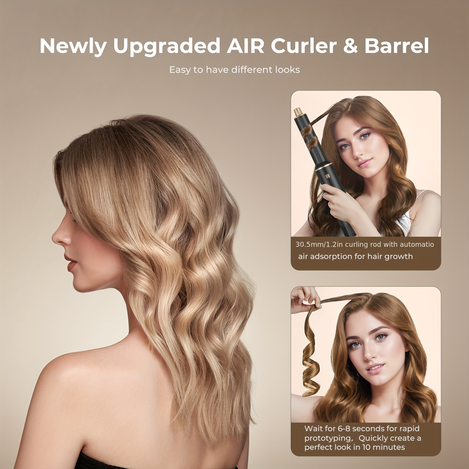 WARM TIPS of CURLING IRONS: Curling iron brush is suitable for all hair types, making it a versatile styling tool for everyone. And air curler is detachable, it can work as travel curling iron when you need to go outside. Some tips for using a automatic hair curler: 1. Hold a small section of hair about 10 cm/3.93″ from the tips. 2. Bring the hair toward the barrel, hair will begin to wrap. 3. Must be Start wrap from the hair tips and bring towards your head. 4. Hold air styler in place for 15s